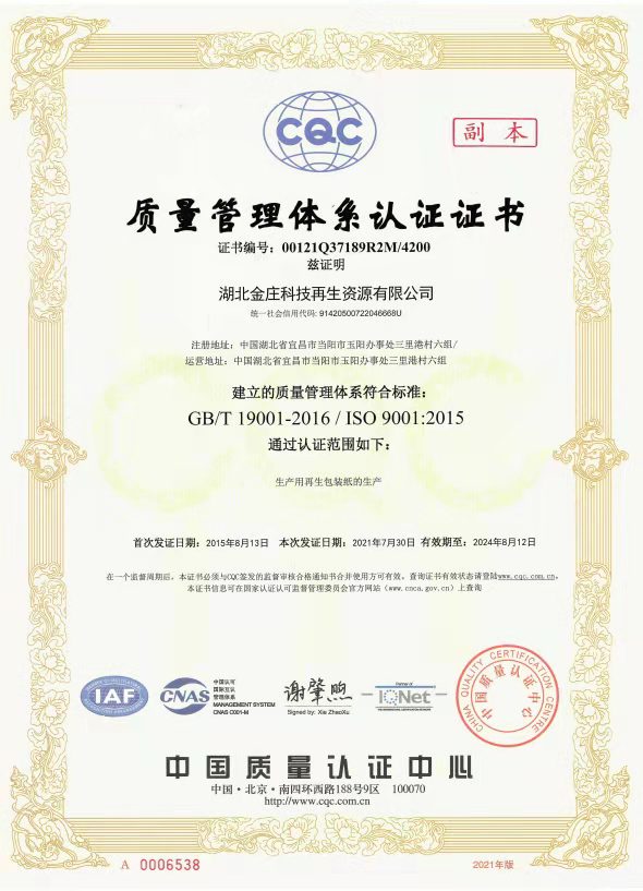 湖北金莊科技再生資源有限公司是以生產(chǎn)再生包裝紙和為工業(yè)園區(qū)集中供熱的資源綜合利用加工服務(wù)型企業(yè)。公司位于當(dāng)陽(yáng)市金橋工業(yè)園,成立于2000年,注冊(cè)資本15486.72萬(wàn)元,占地面積近400畝,現(xiàn)有員工500余人。 自成立以來(lái),公司始終堅(jiān)持“誠(chéng)信、創(chuàng)新、共贏(yíng)”的經(jīng)營(yíng)理念,努力踐行“資源再生綜合利用,堅(jiān)持綠色能源可持續(xù)發(fā)展,以為社會(huì)提供綠色可持續(xù)穩(wěn)定適用的產(chǎn)品為己任”的經(jīng)營(yíng)方針。