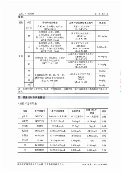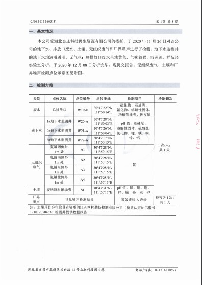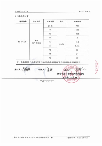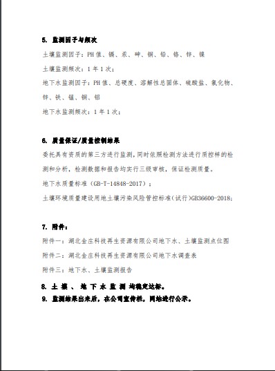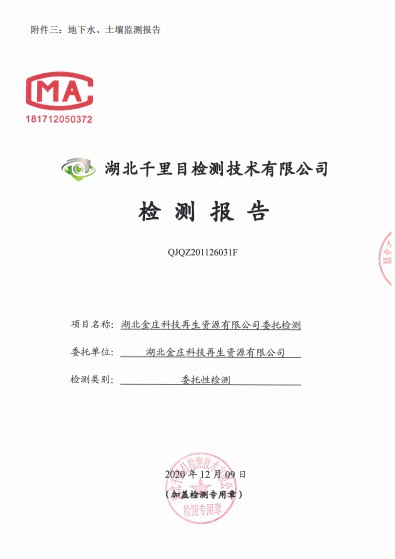 湖北金莊科技再生資源有限公司土壤檢測(cè)報(bào)告(2019年度)