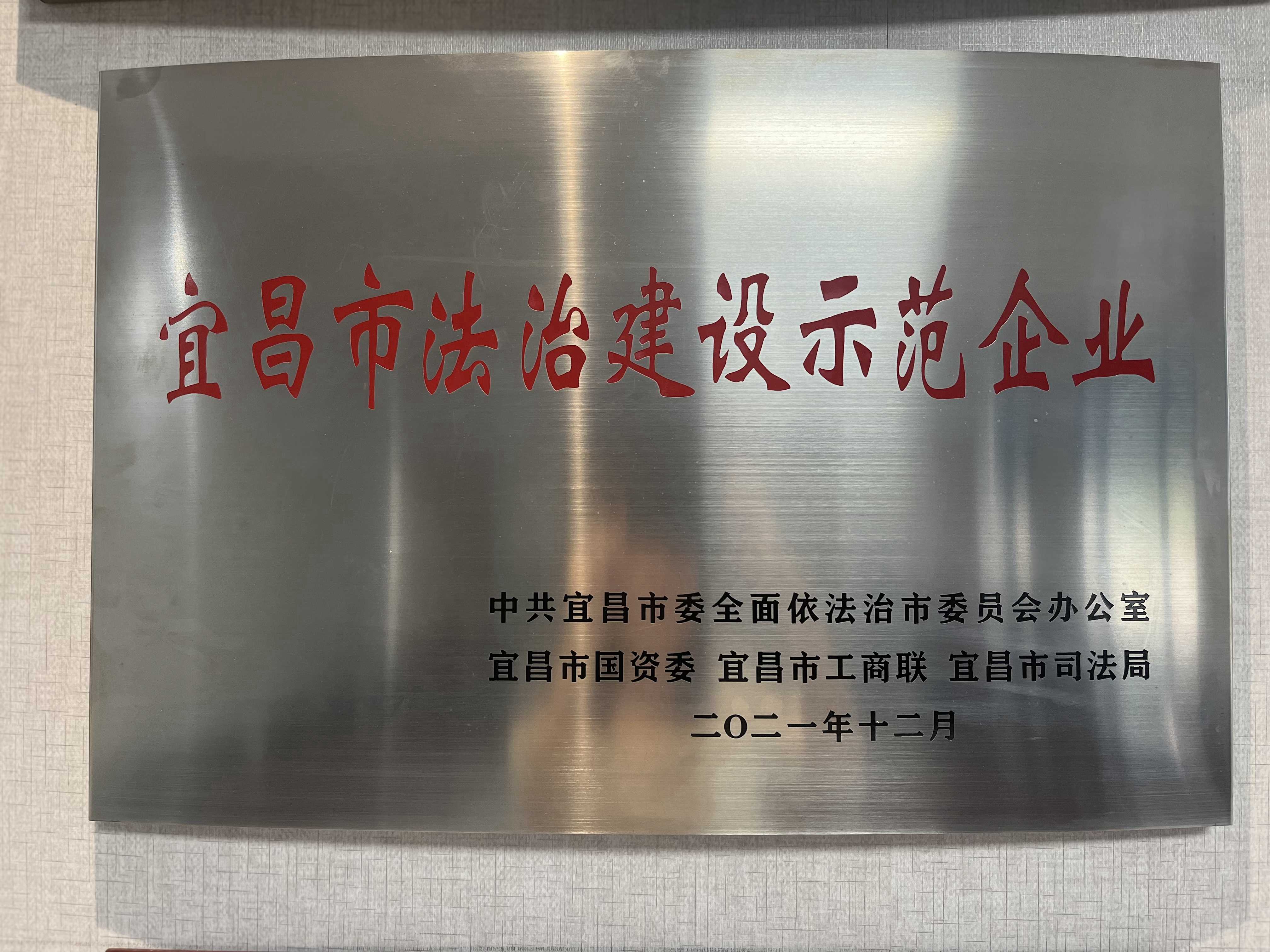 宜昌市法治建設(shè)示范企業(yè)