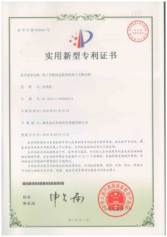 離子交換除鹽裝置的離子交換結(jié)構(gòu)