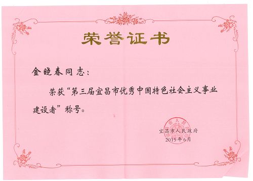 金曉春第三屆宜昌市優(yōu)秀中國(guó)特色社會(huì)主義事業(yè)建設(shè)者稱(chēng)號(hào)