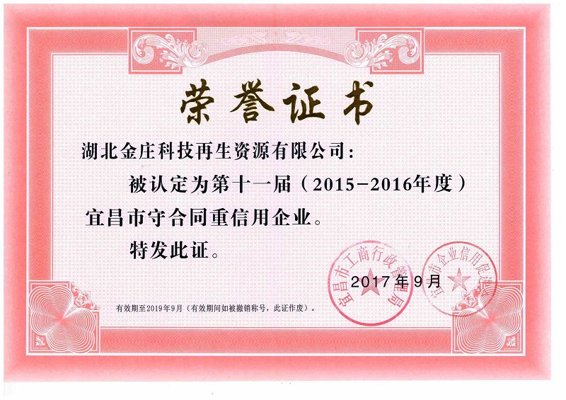 第十一屆(2015-2016年度)宜昌市守合同重信用企業(yè)